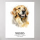 Fira din Golden Retriever med denna anpassade akvarellaffisch. Med deras namn, födelsedatum och ras är det en vacker hyllning till din trogna följeslagare.