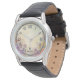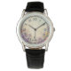 Personlig vattenfärgblomma herrklocka – antikt läderarmband | Bröllopsgåva till brudgum, best man eller far.