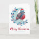 Söt personlig julhälsningskort med en akvarellillustration av en fågel på en måne.