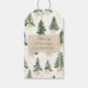 Förhöj din julpresent med denna vackert personliga julklappsetikett med handmålade akvarellträd, mjuka guldbågar och diskreta stjärnakcent. Den eleganta neutrala bakgrunden passar perfekt till alla stilar av presentpapper.
