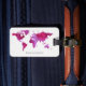 En snygg, personlig resväskemärke med en akvarell världskarta i levande rosa. Designen finns på båda sidor av resväskemärket och du kan enkelt anpassa den mörkgråa typografin med ditt namn och kontaktinformation.