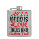 Personlig Alla jag behöver är kärlek Tacos och anp Fickplunta