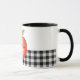 Modern, svart och vit buffel pläderade mugg med sött rött äpple och namn.