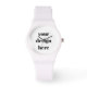 Stil: Women's Sporty White Silicon Watch Med ett bekvämt kiselband är den här klockan perfekt för träningskrigaren inuti dig! Gör det helt till din egen genom att anpassa klockan ansikte med ett inspirerande citat, bild eller design. Kvarselmaterial för kvinnor: band: Kisel Fodral: Kiselmått: Ansikte: 1,18-tumsband: 9,5-tums x 0,79-tums Fodral: 1,57-tumsdiameter Vikt: 0,082 lb 3-handsliknande japanskt Quartz® Fullt-anpassningsbar-utskrift på ansikte finns i 2 färger - Vita och färg butik Stängning av låsbeslag Bevis endast 1 års tillverkares Rosorna garantibatteri ingår Denna produkt rekommenderas för åldrarna 13+