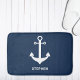 Perfekt för vilket badrum som helst, lägg till en nautisk känsla med den här snyggtens blå badmatt som har ett vitt ankare och kan anpassas med ditt namn under i modern vit typografi.