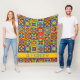 Den här roligtens filt har en mönster med kvadratiska rutor med geometriska former i ljusa skuggor av rött, blått, grönt och gult. Anpassa med ditt val av namn eller speciell text. Perfekt till vilket rum som helst.