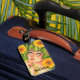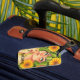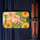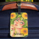 En underbar fantasi-bagagemärke med en vattenfärgsmålning av en söt älv med söt grönt öga. Hon omges av fyra gulter solroshuvuden och massor av grönt löv. En mall i svart text som du vill lägga till ditt namn för att anpassa.