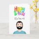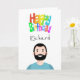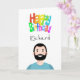 Cute Illustration av ett manligt tecken med anpassade inuti och ut och färglös Grattis på födelsedagen-text på framsidan. Håret, ögonbryn och kläderna färg kan lätt bytas ut.
