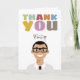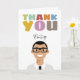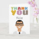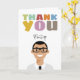 Cute Illustration av ett manligt tecken med anpassade namn och färglös pastelltext "Tack" på framsidan. Håret, ögonbryn och kläderna färg kan lätt bytas ut. Avatar kan vara den person som du skickar kortet till eller som kortet kommer från.