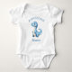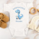 Denna söta babybodysuit har en akvarellillustration av en blå babydinosaurie. Ovan visas orden "BABYSAURUS" i blå text. Personliggör med barnets namn nedan. En idealisk design för en pojkes baby shower.