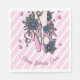 Söt balletskor för din lilla ballerina accentuerad med blommor och pärlor. En rosa- och vit rand-bakgrund slutför sensembeln. Kan vara personlig.