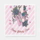 Söt balletskor för din lilla ballerina accentuerad med blommor och pärlor. En rosa- och vit rand-bakgrund slutför sensembeln. Kan vara personlig.