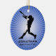 Baseball Player Personlig Ornament. Ett Batter i läge mot en blå och vit startstöt. Allt anpassade, fram och tillbaka!