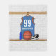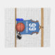 Ljusblått och Orange basketbollersey som hänger i ett skåerrum med en basketboll, basketbollsskor och en drink flaska. Tjersey är anpassadet med dina egna nummer och namn, för att skapa en verkligt unik gåva till Basketbollspelaren eller basketbollen fläkt