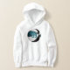 Färg hoodie för flickor eller pojkar i basketlaget i anpassningsbar har en realistisk bild av en basket som har omväxlande teal-, vit- och svart färgade paneler, på vilka du kan anpassa idrottsmannens jersey-nummer - av katz_d_zynes