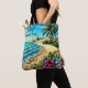 Fin tropisk konst på en personlig strand i väskan. Bär med handduken, snacks, glasögon, mobila i den här söta väskan.