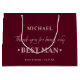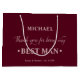 Personlig BEST MAN-presentväska med burgundi och dammig ro färg palett. Namn-mallen är redot som du kan använda för att lägga till den bästa mannens namn samt briden & gruppens namn och bröllop. Tack för att ni skrev: "Tack för att ni är min bäste man" i en blandning av skript för elegant och stark, djärv typografi. Bläddra i vår butik efter alternativ färg och storlek.