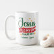 Håll modet uppe och tro på under julen med denna anpassningsbara julmuggen med kristet tema. Med elegant script-typografi i en klassisk röd och grön julfärg, glittrande stjärnor och den meningsfulla frasen "Jesus fyller min bägare" inkorporerar denna design vackert de tröstande orden i Psaltaren 23:5. Personifiera den med ett namn för att skapa en unik souvenir som dagligen påminner om Guds kärlek och löften. Perfekt som gåva till kyrkanpersonal, medlemmar i bibelstudiegrupper, kristna vänner eller någon som värdesätter sin tro, är denna mugg både praktisk och inspirerande under julen och därefter.