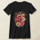 Den här biodlingsskjortan har underbar rosa och lätt gula blommor med tre bin som samlar in pollen. I den övre högerna finns ett område där du kan lägga till bigårdens namn eller din favoritbiodlingsfras.