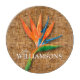 Personlig med ditt namn och en vacker fågel av paradiset på ett vävt torktumlare i mönster, gör den här runda glasskivan en snyggt till din köksdekoration. MATCHING-objekt i vår butik.