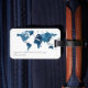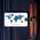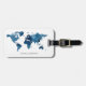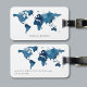 En modern, personlig bagagetikett med en akvarell världskarta i marinblå. Designen finns på båda sidor av bagagetiketten och du kan enkelt anpassa den med ditt namn och kontaktuppgifter.