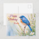 Personlig blå fågel blommor vattenfärg födelsedag vykort