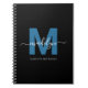 Personlig elegant modern svart och blå initialmonogram spiralanteckningsbok med scriptstil. Denna snygga anteckningsbok är tillverkad med en sofistikerad och stilren touch med en platt blå initial på en slank svart bakgrund. Ett graciöst vitt namn i elegant kalligrafi överlagras initialen, med hela för- och efternamnet tryckt under i en ren och modern stil för en polerad och personlig finish. Oavsett om den används för anteckningar på kontoret, för att skriva ner skoluppgifter - perfekt för mellanstadiet, gymnasiet eller universitetet - eller som en stilren skissbok, är denna anteckningsbok en utmärkt och genomtänkt present till högtider, födelsedagar, skolstart för lärare eller studenter, eller någon annan speciell tillställning. Den förenar elegans med funktionalitet och är