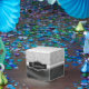 Personlig Black and Silver Damask Cube Box Presentaskar