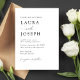 Personligens inbjudan till bröllopsbröllop med svart och vitt elegans är designad för par som söker ett tidlöst och sofistikerat sätt att tillkännage sin speciella dag. Dess klassiska monokroma utformning är perfekt för ett stort antal olika bröllop-evenemang, inklusive högtidliga galas, stadsceremonier i chic och firande i elegant. Inbjudan är perfekt för både moderna och traditionella teman och erbjuder en raffinerad beröring som motsvarar intima sammankomster och stora mottagningar i lika hög grad. Med anpassningsalternativ som gör det unikt för dig säkerställer den här inbjudan att ditt meddelande från bröllop återspeglar ditt stil och anger tonen för en oförglömlig händelse.