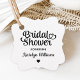 Elegant personligt bröllp möhippa-kardstock-favorittaggar har ett modernt kalligrafi-skript "Möhippa"-typografi med söt hjärtaccent och dekorativ kant-form. Anpassa med bridens namn och ett anpassningsbar tack för att du firar budskapet på baksidan. Ren och enkel design. Observera att svartvit färg kan ändras.
