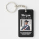 Den moderna studenten-nyckelkedjedesignen i personlig har ett fyrkantigt foto av student i vitt med enkel och klassisk anpassningsbar i första namn, klassår och namn som kan vara personlig. Den svarta bakgrunden kan ändras för att koordineras med färg i skolan eller fotot.