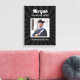 Modern svartklädd konst av dukens vägg kommer att visa student i åratal för kom. Utformningen innehåller ett fyrkantigt foto av den grad som är inramad i vitt med enkel och klassisk text namn, klassår och namn som kan vara personlig. Omfattar en subtil starster mönster. Den svarta bakgrunden färg kan ändras för att koordineras med färger i skolan eller fotot.