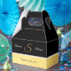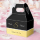 Unik och elegant med monogrammerad personligt bröllp-fest beställer presentlådor. Du kan köpa den här massan/grossistdelen för bröllop till ge ut till dina gäster. Svart och guld-folie med namn från bruden och brudgummen med monogram av efternamnet. Redigerbara mallrutor. Hittade i samlingen "BLACK & GULD" bröllop.