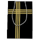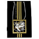 Utformningen har ett par isskridskor över en snöflingande vapensköld med svart och faux guld glitter bakgrund. Den här eleganten fungerar vintersportdesignen som en coola modern och unik presentväska med personlig för isskor | figur som roterar juldagen, jul party eller andra särskilda tillfällen.