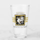 Utformningen har ett par isskridskor över en snöflingande vapensköld med svart och faux guld glitter bakgrund. Den här eleganten fungerar vintersportdesignen som en coola modern och unik glastumör med personlig.