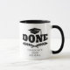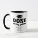 Cute anpassningsbar studenten kaffe mugg med ett tak för student, grenar, student först namn och ord med "DONE" i djärv modern typografi. Lägg till uppgifterna om student genom att klicka på knappen "Personalisera" ovan med det år de graderades