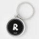 Personlig Black & White Initial Monogam Namn Rund Silverfärgad Nyckelring