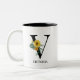 Personlig Blommigt Alphabet V Monogram tvåtonskaffe Mugg