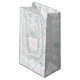 Presentera dina gåvor med tidlös charm med hjälp av denna personliga blomsterinitiala presentpåse. Med ett delikat mönster av mjuka blå och rosa blommor och diskret grönska, frammanar denna design skönheten hos antika textilier och vintage botaniska tryck. Den centrerade monogrammen, infattad i en elegant blomsterkrans med detalj av band, ger en graciös och personlig touch som får varje gåva att kännas genomtänkt och speciell. Perfekt för födelsedagar, bröllop, shower och speciella firanden, denna presentpåse förhöjer din presentation med klassisk skönhet och effortless stil.