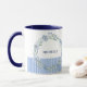 Personlig blomsterkransmugg med marinblå ränder mugg