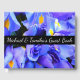 Söt blå irisslor ser häpnadsväckande ut mot en svart bakgrund och skapar en bedövande bröllop-gästbok.