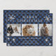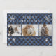 Vackra svarta och blå bufflar pläderade fotokollage julkort med snöflingor och stjärnor på framsidan och en svart och blå buffel klä mönster längst bak. Anpassa enkelt de här tre fotojulkorten med bilder, text och familj namn.