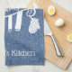 Personlig Blue White Faux Denim Baking Utensil Kökshandduk