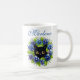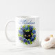 Personlig Blommor, svart katt, Lone Star, Texan blommigt design. Snygg illustration av Blåa blommor. Texas. Blånät mugg.