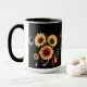 Börja din dag med en liten tuff charm! Det här enastående svarta kaffet mugg har en sjudande blommigt med handdragna solblommor och unika, boho-inspirerade accents. Det fet svarta insida och hantera ditt eget namn och unika design. Perfekt för att lägga till en personlig, en bohemisk fläkt till din dagliga rutin. mugg ger en oförglömlig gåva till födelsedagar, hemmaverier eller någon som kärlek är ett fritt andat stil.