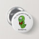 Söt grön bokmask som bär runda glasögon och håller en brun bok. Han visar tummen upp tecknet och har en stor glad smil. Ovan och nedan finns mallar för att lägga till egen text för att anpassa denna knapp.