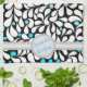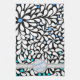 Blommor och snurrande vita petaler mot en fet svart bakgrund. Originalfärgning av digitalt material. Crisp kant, vassa linjer och vita prickar och snurrande petaler. Blå teal färg tonar ut blomcentrum. Anpassa med första namn eller namn i familjen.