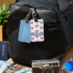 Ett sött rött och blått flygplansbagagemärke för mönster. Anpassa enkelt till ett barns namn.