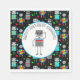 Robot Temed personlig födelsedagsfest papper tallrikar. Färg: blått, gult, kalkgrönt och rött.