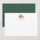 Våra snygga personliga brevpapperskort med platt design har en spray av röda peonblommor och frodiga gröna blad i elegant akvarell, med ditt namn eller valfri personlig text under i modern sans-serif-stil. Baksidan har ett subtilt prickigt diamantmönster i rik jaktgrön.